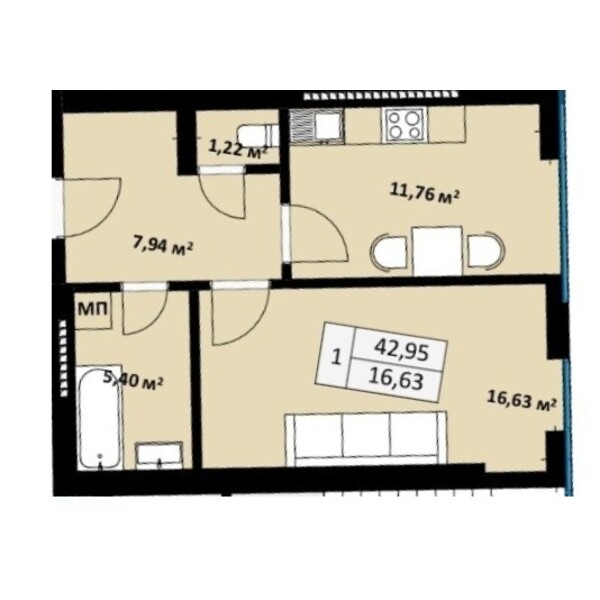 42.95 м2