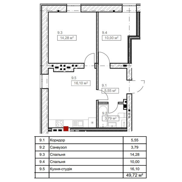 ЖК FreeDom; Продається 2-к квартира у ЖК FreeDom, метраж - 49.72 м². Кількість поверхів у ЖК — 4