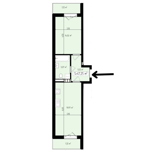 ЖК Mala Praha; Продається 1-к квартира у ЖК Mala Praha, метраж - 47.25 м². Новобудова здається в 2 кв 2023 року. Кількість поверхів у ЖК — 7, обробка — чорнова.