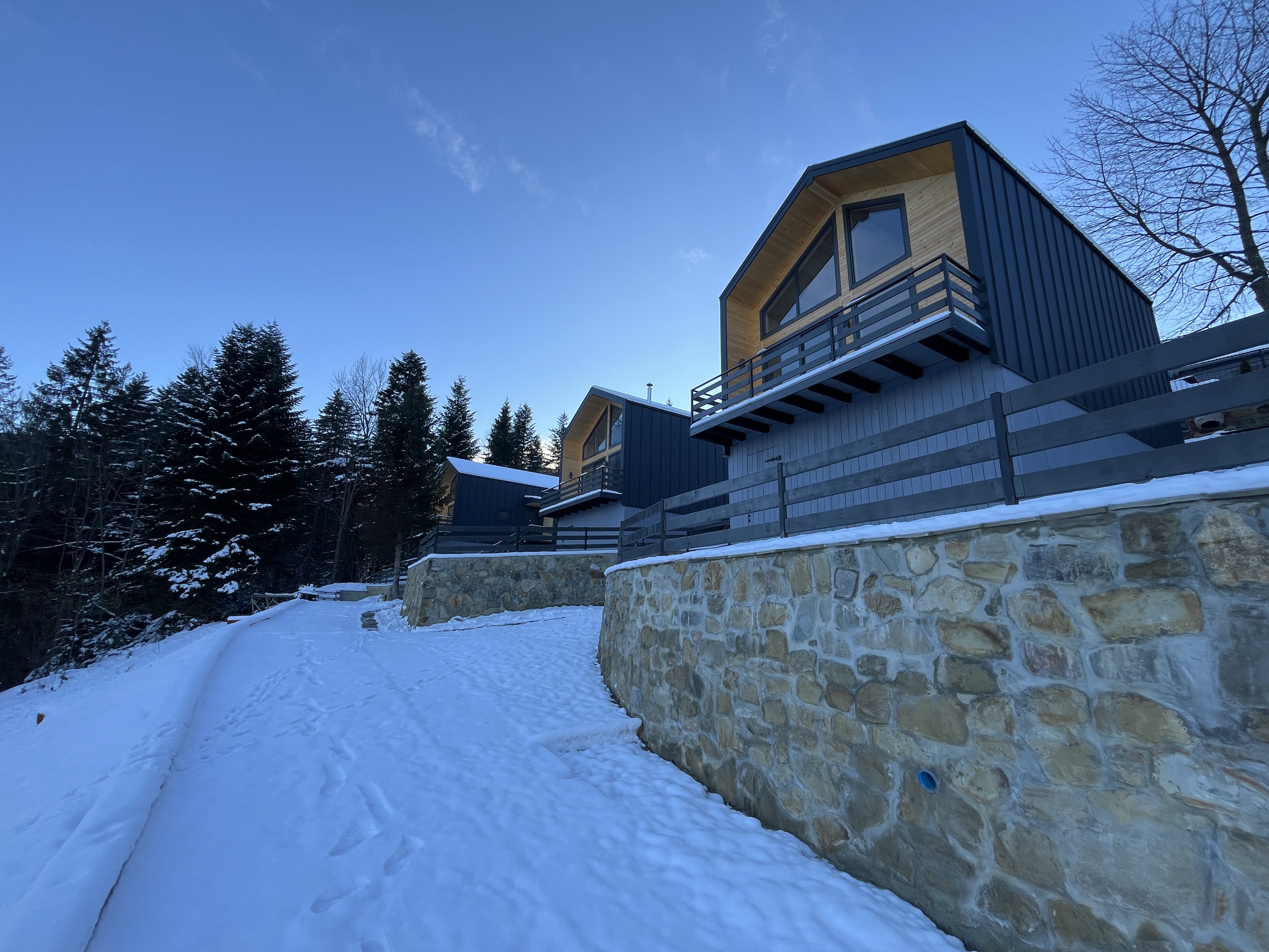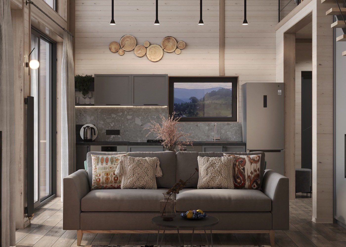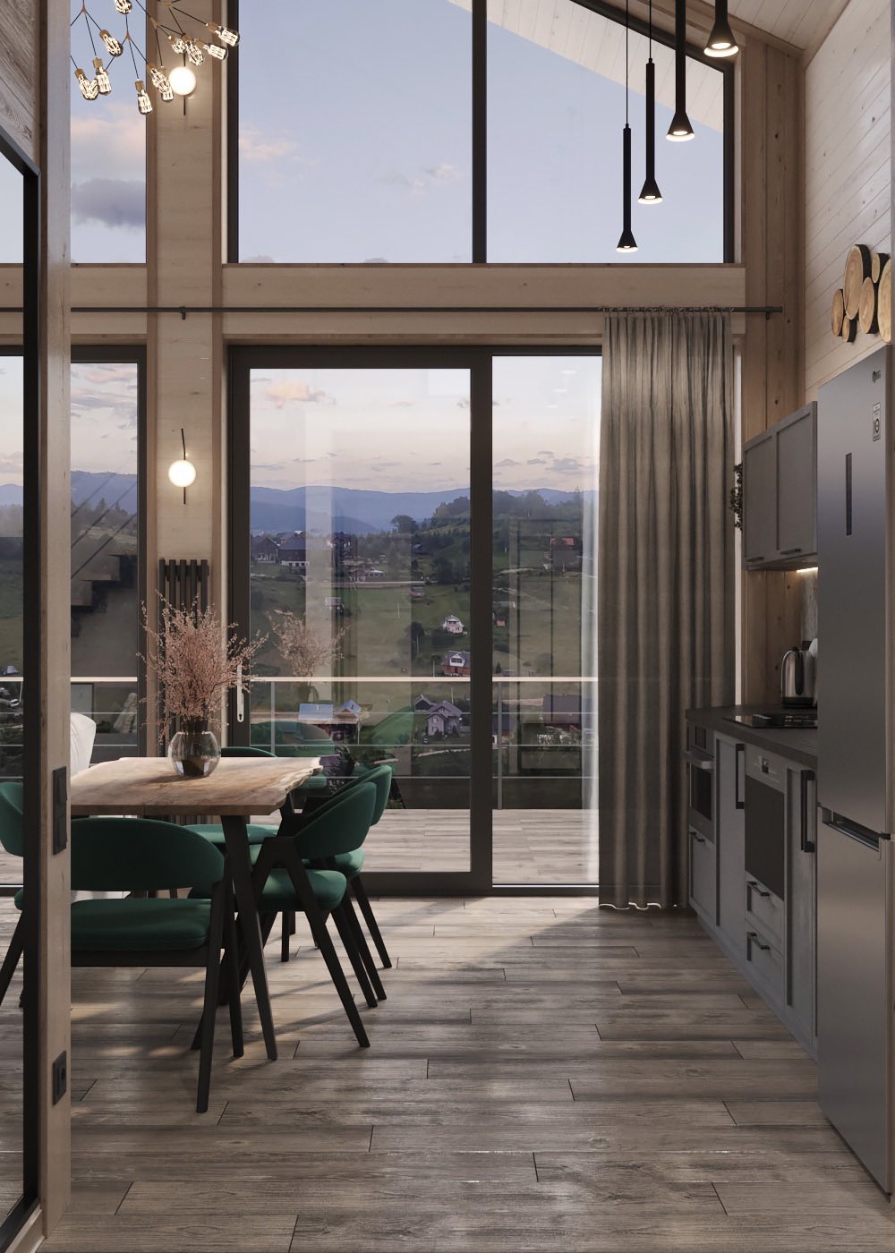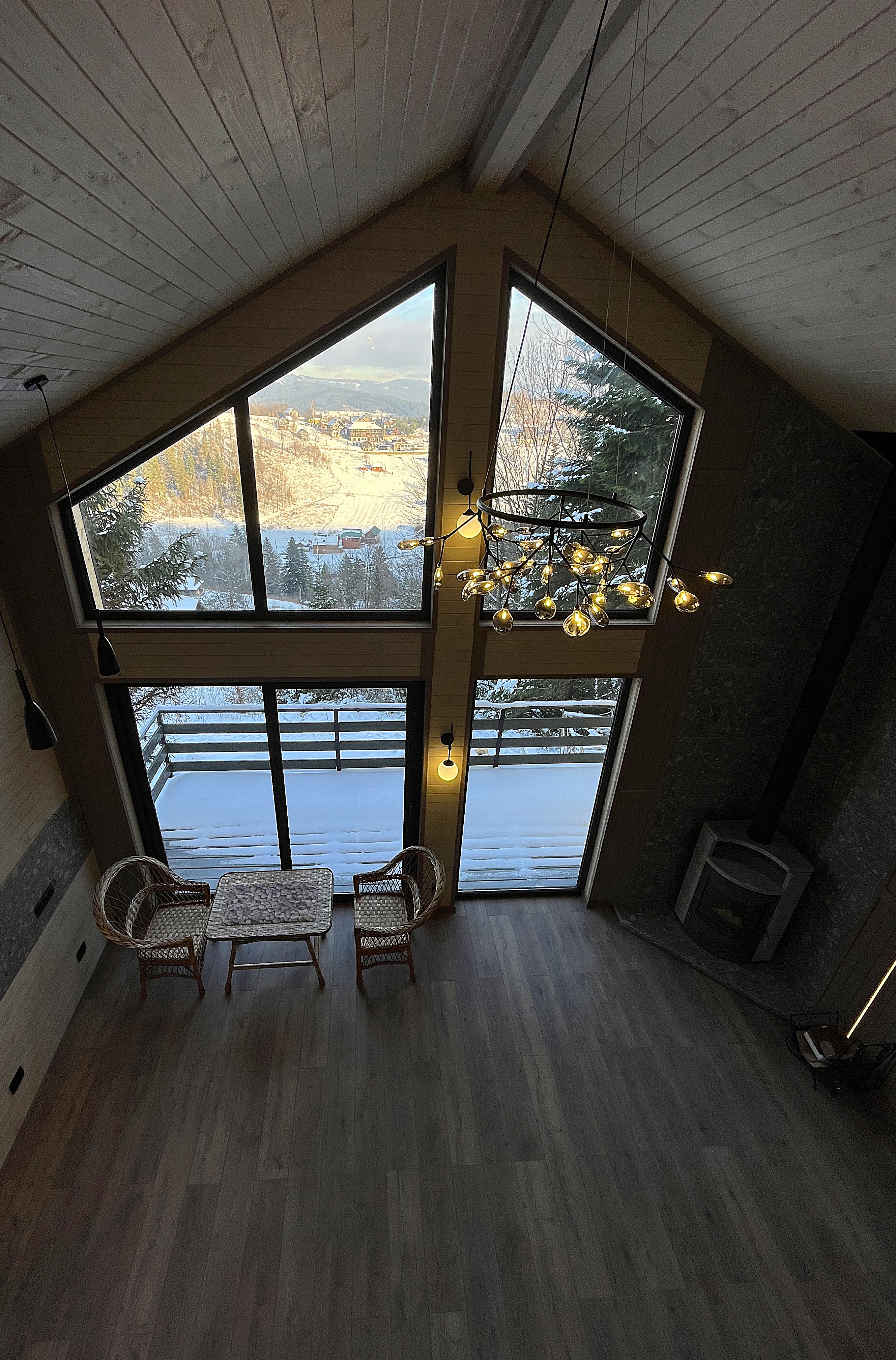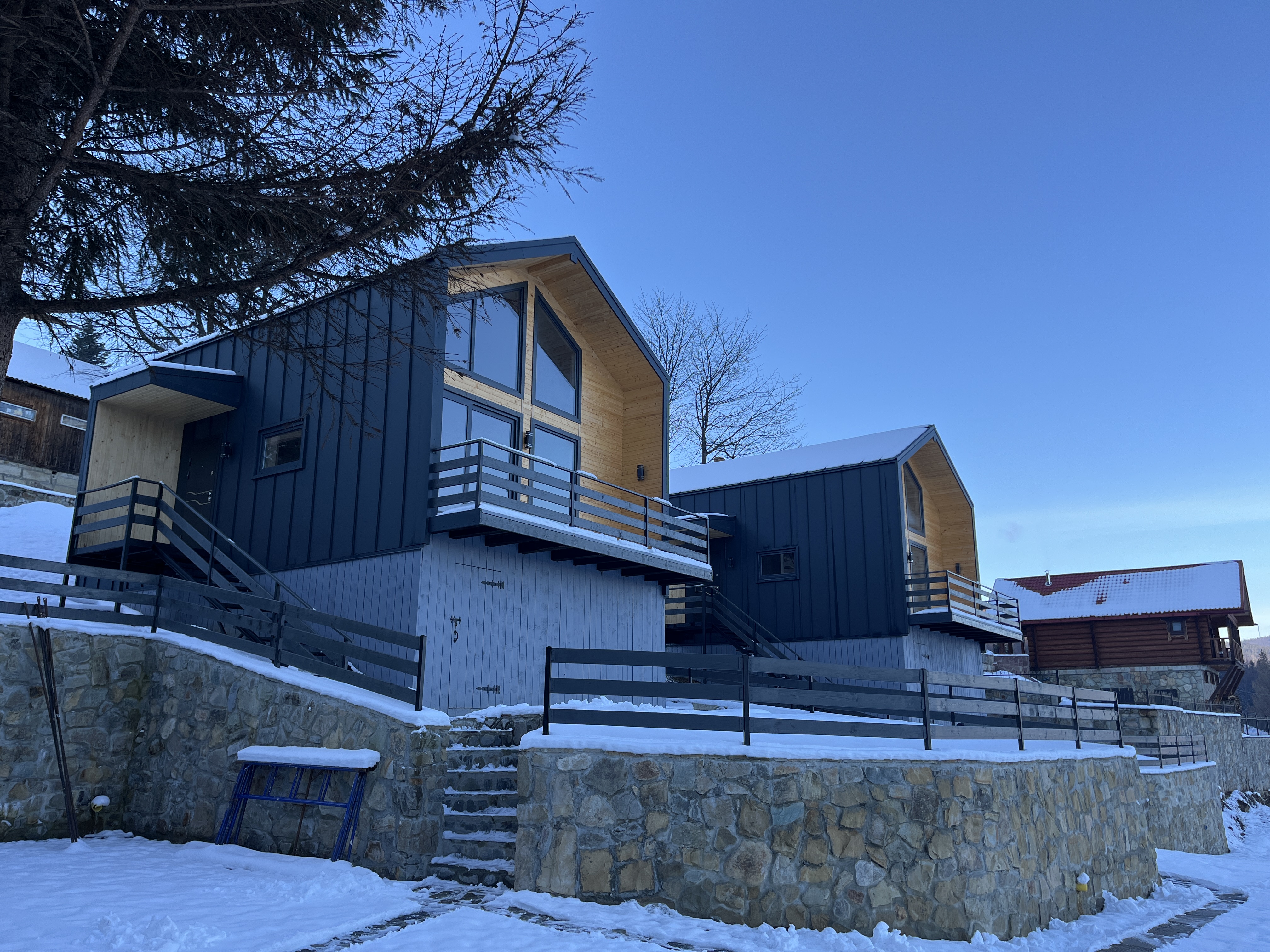 Пропонуємо Вам сучасні котеджі які знаходяться в Яремче в дуже мальовничому місці з неймовірною панорамо на гори, знаходяться на висоті 700 метрів над рівне моря, побудовані з високоякісних матеріалів. Виконаний у стилі мінімалізму, розташований на схилі, оточеному природою. Він має двосхилий дах і фасад із поєднанням дерев'яних та металевих елементів, що гармонійно поєднуються із навколишнім середовищем. Будинку включає простору вітальню з панорамними вікнами, що відкривають чудовий вид на природу. Велика тераса є ідеальним місцем для відпочинку на свіжому повітрі. На цокольному поверсі передбачено технічні або господарські приміщення. Площа котеджу складає 64 м2 що включає коридор, спальну кімнату, санвузол, кухню студію, і другий поверх з другим світлом який має 21 м2 Цей котедж ідеально підійде для тих, хто шукає затишне житло в горах, поєднуючи комфорт і сучасний стиль. Якщо Вам сподобалась пропозиція, або маєте додаткові питання з радістю допоможемо Вам за номером телефону який вказаний на сайті де переглядаєте дане оголошення